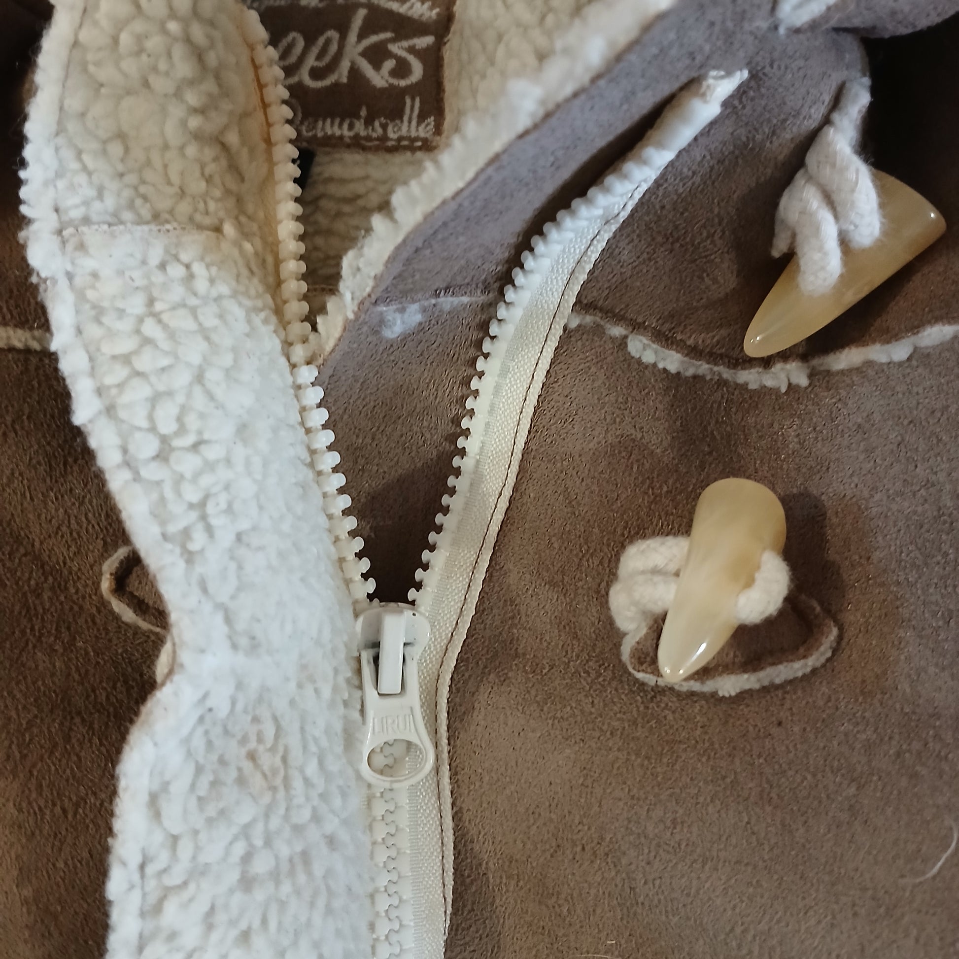 Zip and two toggles for fastening