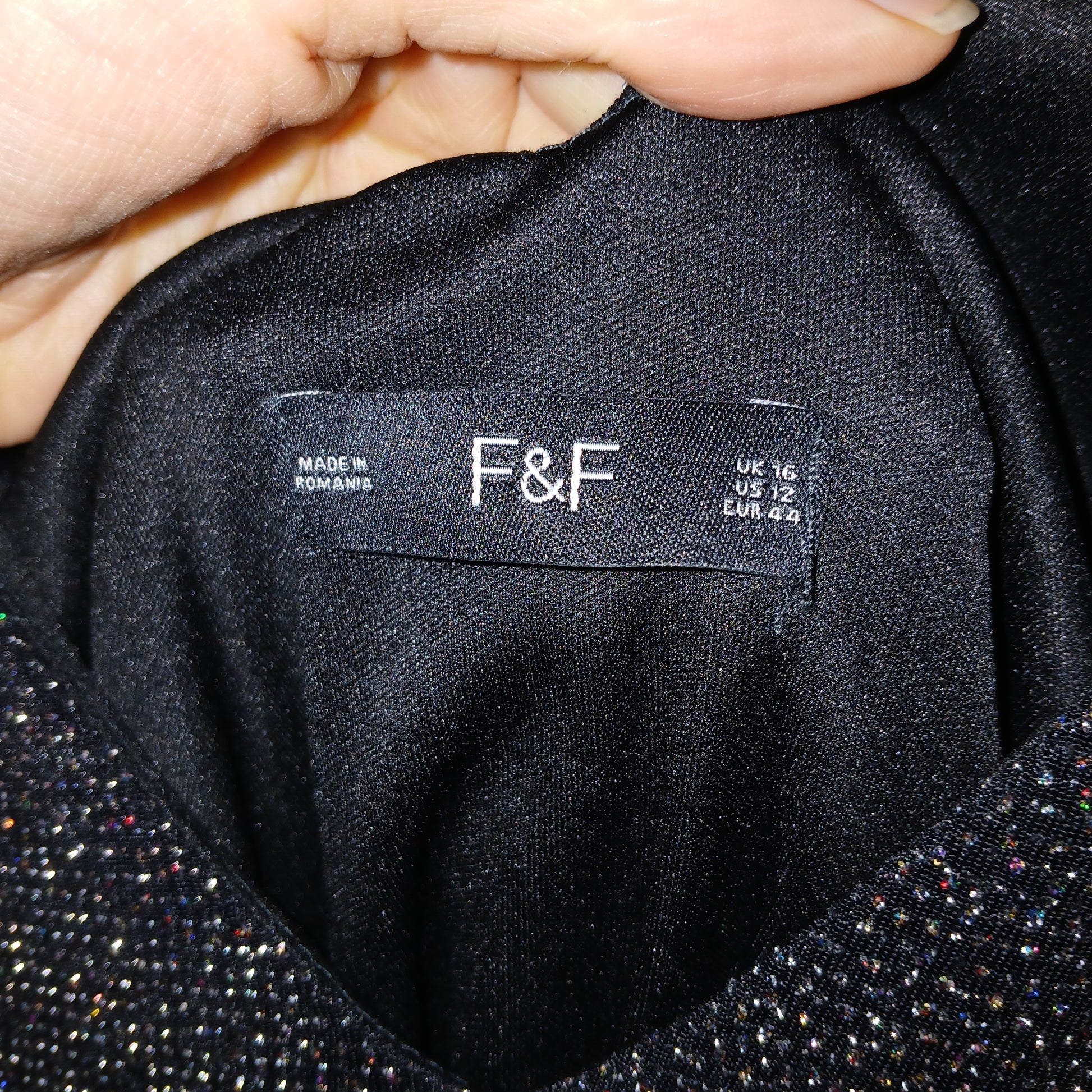F&F Glittery Sparkly Party Black Dress Size 16