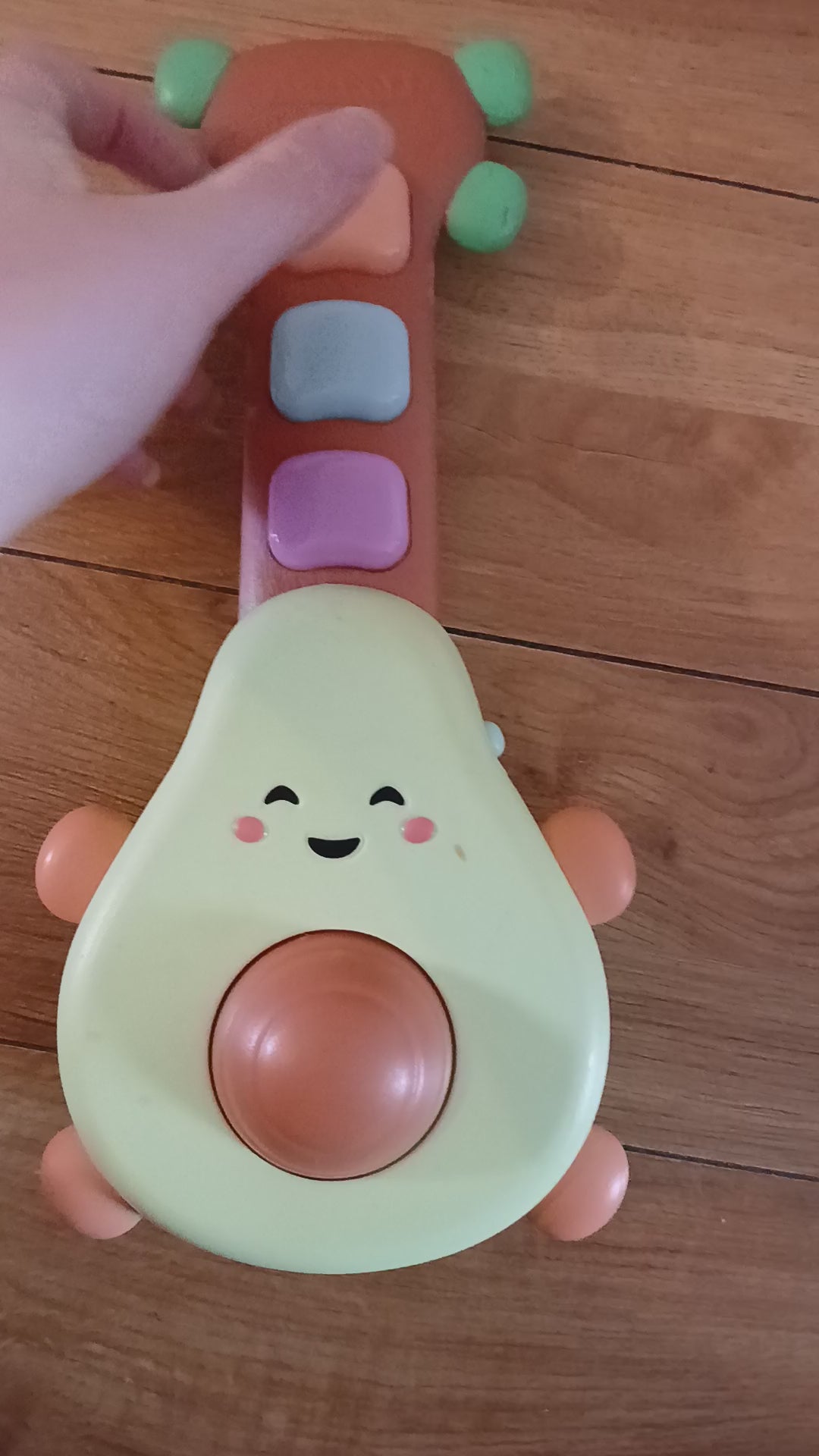 - The cute, laughing avocado plays 6 different songs and 10 guitar riffs, and it has luminous buttons